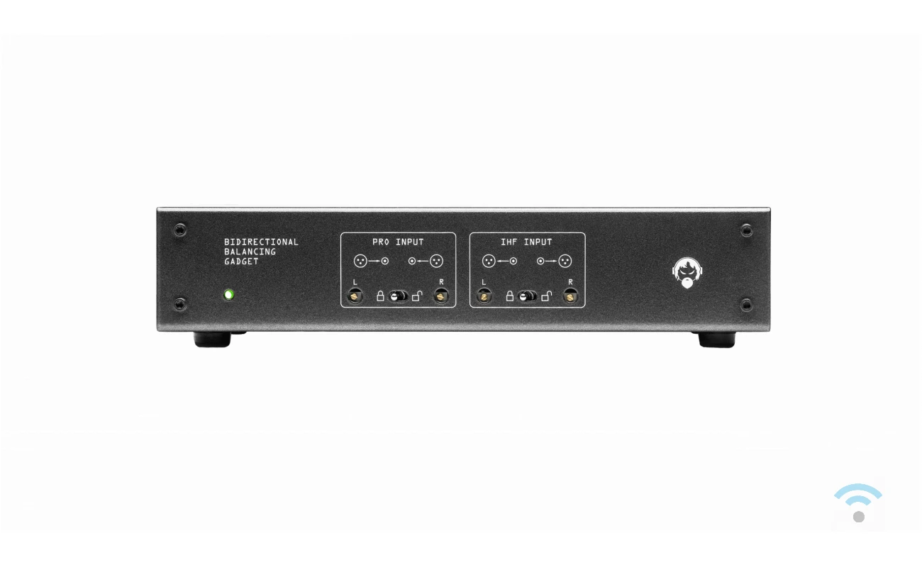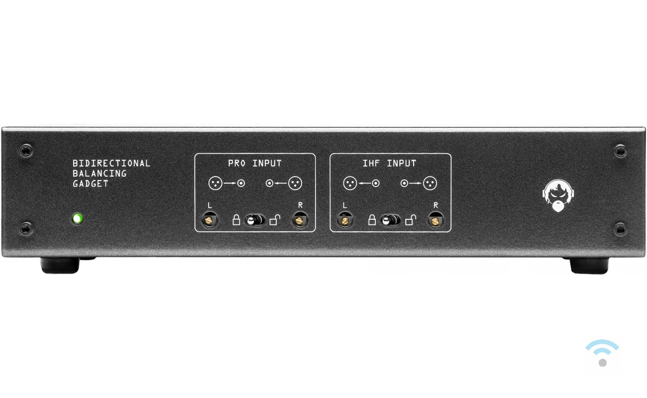 Deze gadget kan één stereo-paar van ongebalanceerd naar gebalanceerd converteren en een ander stereo-paar van gebalanceerd naar ongebalanceerd. Ideaal voor opnameapparatuur of geluidskaarten in computers. De gebalanceerde en ongebalanceerde signalen worden respectievelijk op RCA/Phono-jacks en XLR-connectoren aangesloten.